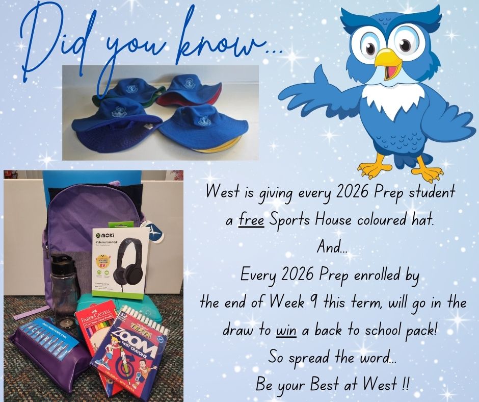 Every 2026 Prep student enrolled by the end of Week 9 this term will go into a draw to win a back to school Prep pack.
